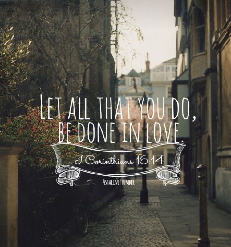 Cor. 16;14 Share this: Click to share on X (Opens in new window) X Click to share on Facebook (Opens in new window) Facebook Like Loading...